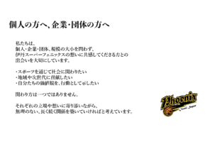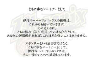 伊丹スーパーフェニックスのパートナーにご興味・ご関心をお持ちいただいた企業ご担当者様からのご質問をお待ちしております。